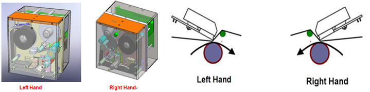 TTO打碼機(jī)的打印體依據(jù)底襯膜走向的不同,相應(yīng)的有兩種機(jī)型進(jìn)行匹配,左右機(jī)(Left Hand)和右手機(jī)(Right Hand)。 區(qū)分兩種機(jī)型的方法是從正面正視打印體,然后看底襯膜和色帶的走向。