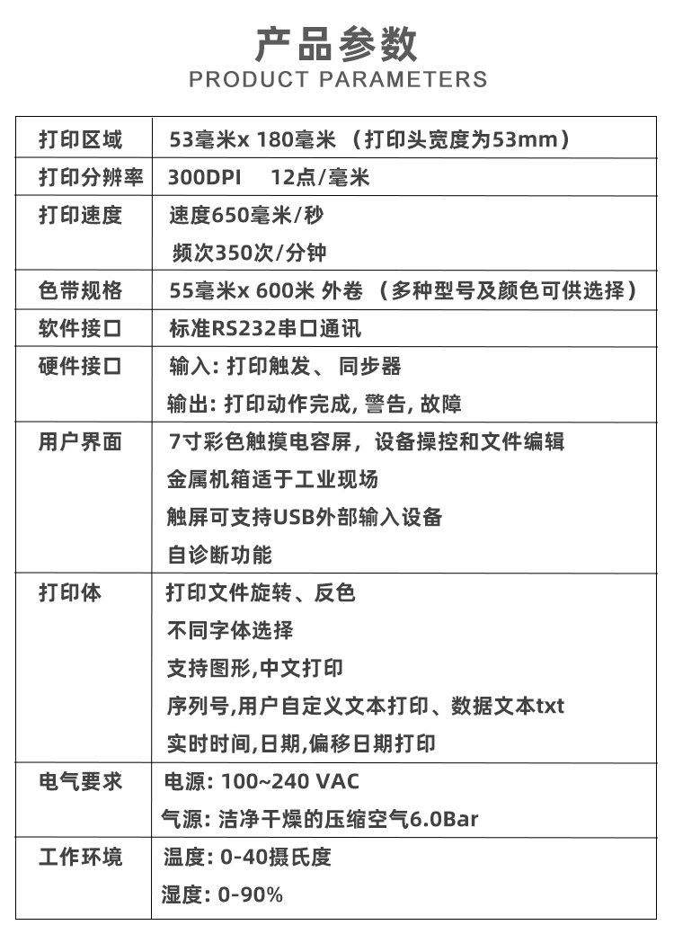 TTO熱轉(zhuǎn)印智能打碼機(jī)由彩色觸屏控制器,全球通用穩(wěn)壓輸出電源,打印體及控制電纜組成。 在特定條件下,觸摸屏控制器和打印體可以在有效電壓連接的條件下,分別實(shí)現(xiàn)獨(dú)立工作。