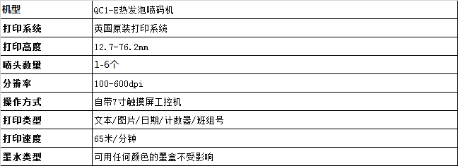 一、QC1-E熱發(fā)泡噴碼機(jī)技術(shù)參數(shù)
